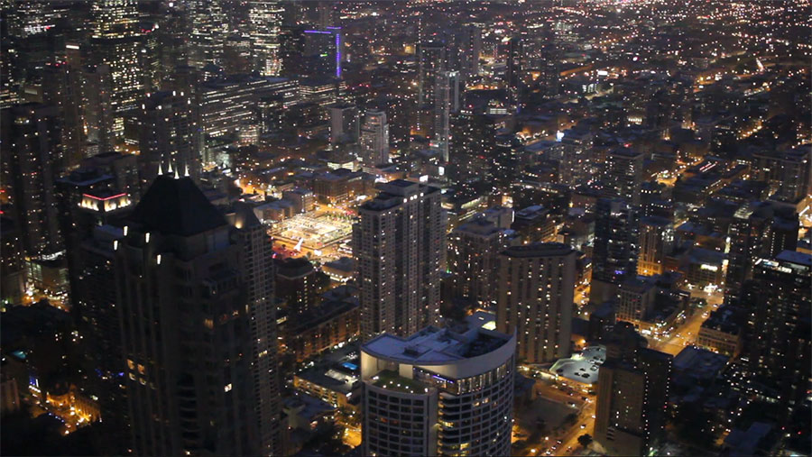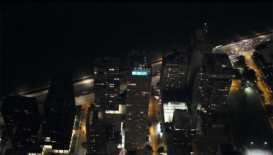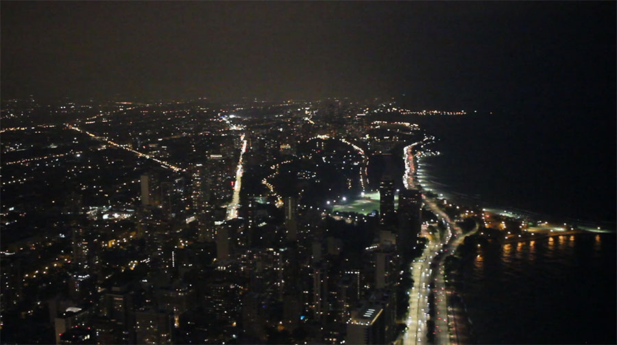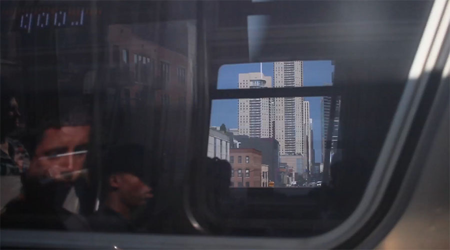 L’ensemble évoque un paysage architectural, nous déambulons en images dans la ville de Chicago à travers le réseau de la CTA (Chicago Transit Authority) et dans l’installation, des boitiers de disques CD transparents construisent une architecture modulaire rappelant les buildings de cette ville nord américaine. La ville devient une grand terrain de jeux, une aire d'exploration sensible et poétique qui pour moi évoque le territoire musical de la « house music » à partir l'idée d'une construction imaginaire abstraite et plurivoque.